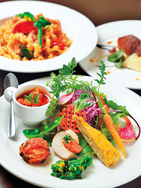ランチは、こだわり素材で作る本格イタリアンをいただきましょう。店のイチオシは、自家製生パスタと、薪の石窯で焼き上げるピッツァ。とくに、毎朝作る生パスタは、キタッラやタリアテッレなど数種類用意されていて、パスタソースとのからみもバツグンです。ランチではパスタとピッツァどちらも食べられるコースもあるので、ちょっと欲張ってみても良いかも!