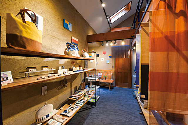 染色工房に併設されたショップには、綿や麻などのファッションアイテムや小物がズラリ。爽やかな空色や、鮮やかなカナリアイエロー、あたたかなコーラルピンクなど、色使いがとってもキュートです。手ざわりの良い帆布のバッグやリネンのストールは日常使いにもピッタリ。お手頃なブックカバーもおすすめです。