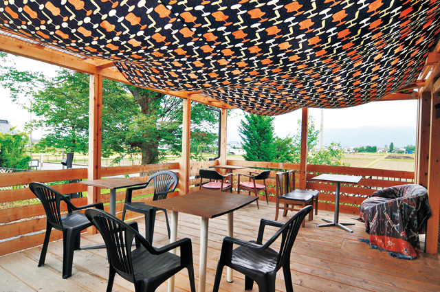北アルプスを望む田園風景の中にポツンとたたずむのがベーカリー&カフェ「bunga」。自家製の天然酵母と長野産の食材を使ったハード系パンが評判の人気店です。エジプト式石窯とよばれる石窯で焼き上げたパンは薪の香りただよう香ばしさが特徴。併設されたカフェでは、これらのパンをイートインできるほか、パンプレートなどの軽食、自然酵母パンケーキなどのスイーツが用意されています。これからの季節はテラス席がおすすめ。美しい山並みを眺めながらのんびりとお茶をいただきましょう。
