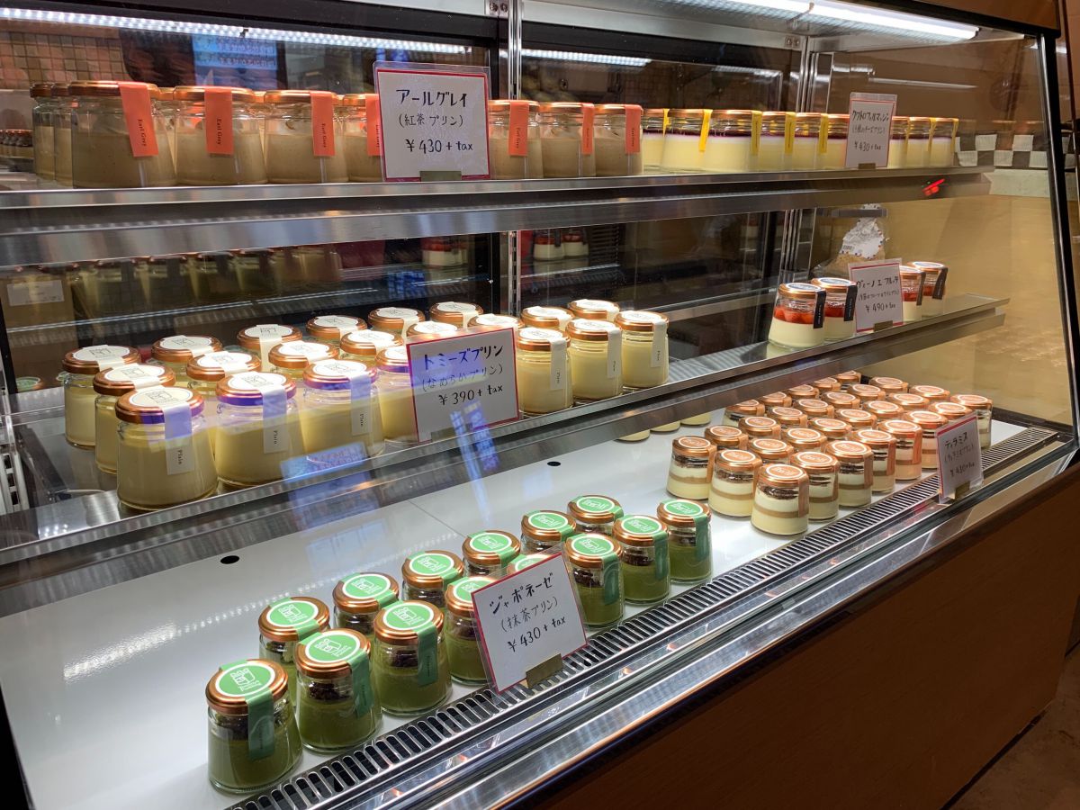 ショーケースには、きっちりと並ぶ美しいプリンの姿が!