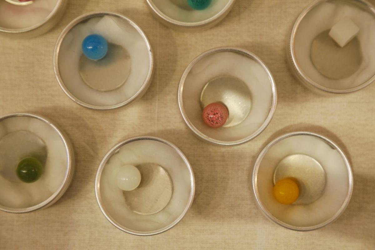 アルミの廃材に樹脂を合わせて作られた「N7」のピアスは、カラフルなキャンディのようなビジュアルに、思わず胸がときめきます。