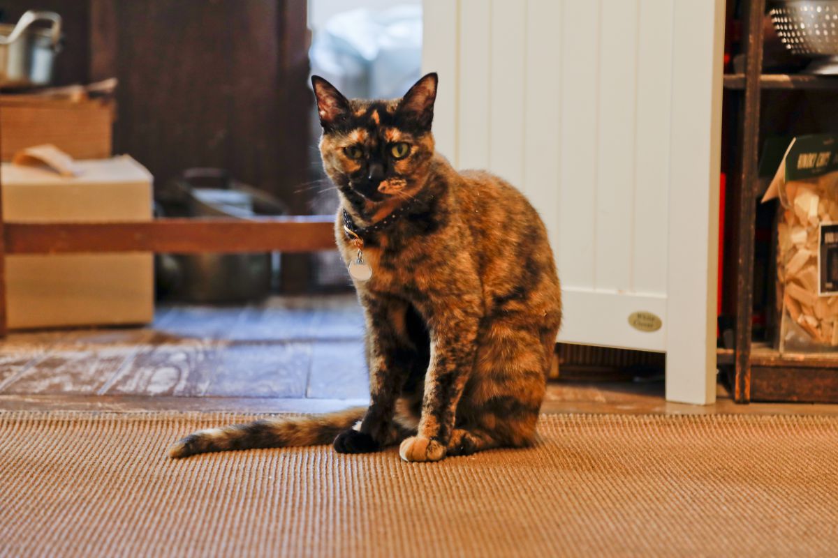 こちらで看板ネコを務めるサビちゃん。お客さんが帰る時は、その行く手をふさぐようにゴロンと寝転んで甘えてきます。