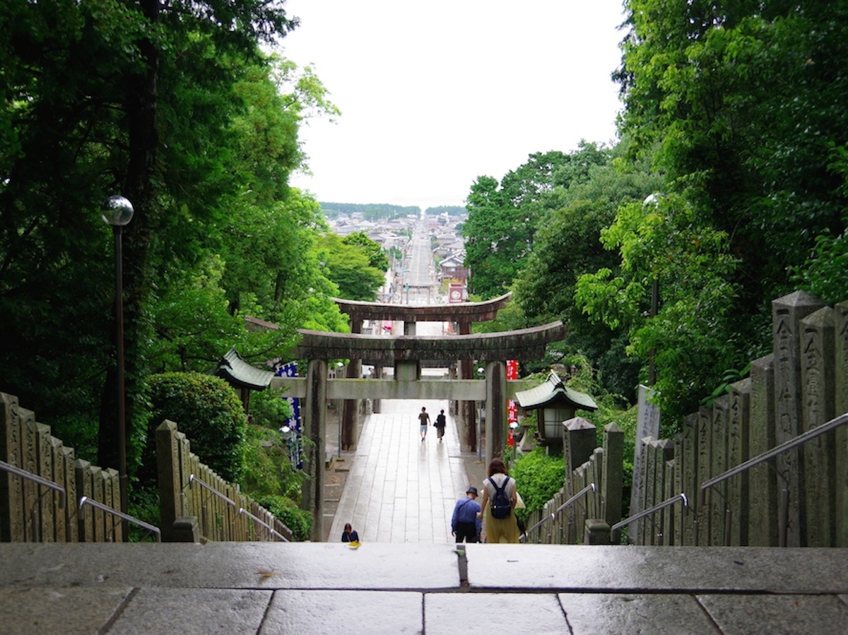 まっすぐ西に延びた参道の先に砂浜と海が広がる、そんな絶景を望む高台にある宮地嶽神社。西に位置する浜に落ちる夕陽とくれば……そう、以前嵐が出演して話題となった航空会社のCMでも使われたあの「光の道」が見えるのです。