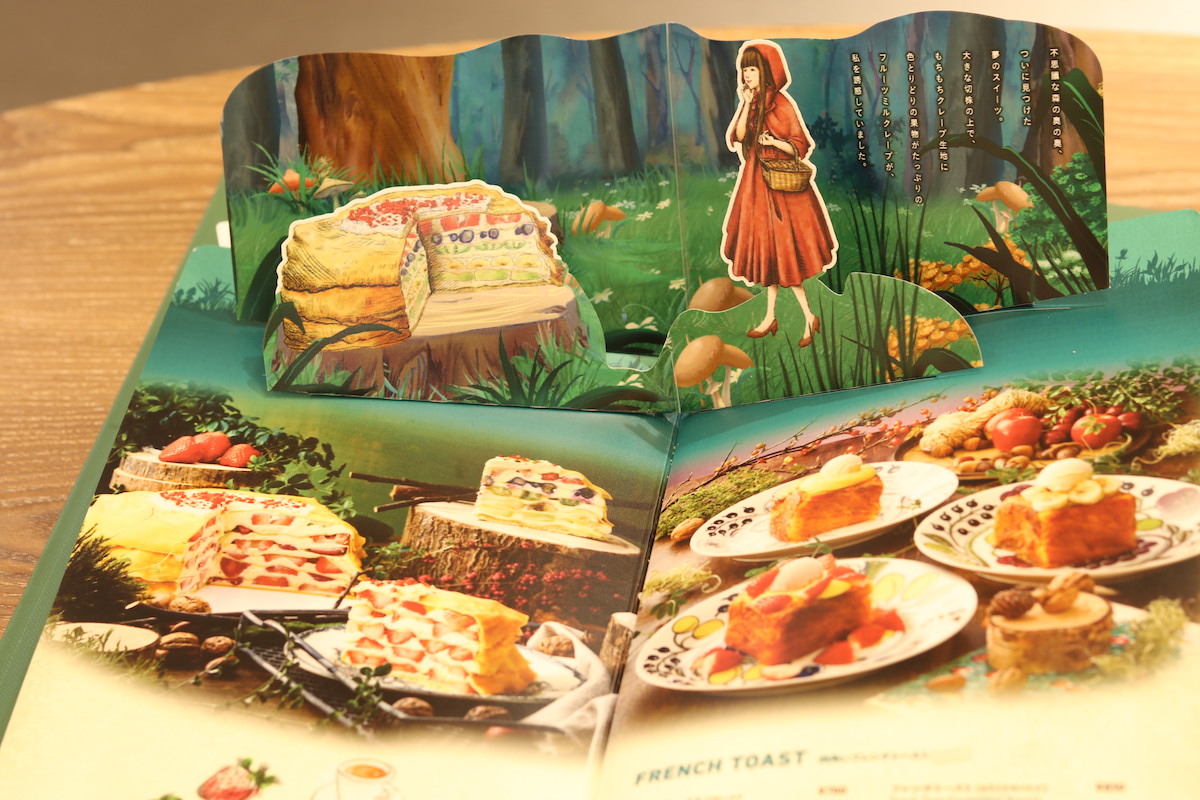 飛び出す絵本のようなメニュー表にテンションUP!それぞれのページに童話のようなストーリーがついていて、メニューを選んでいる時間も存分に楽しめますね。