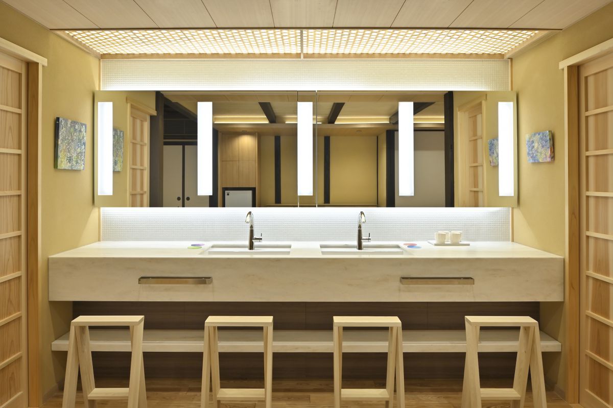 さらに4人で並んで使えるメイクアップコーナー(洗面)と風呂、トイレが配置され、和室やメイクアップコーナーには美術作家である植田志保氏の色鮮やかなアートピースが彩を添えます。