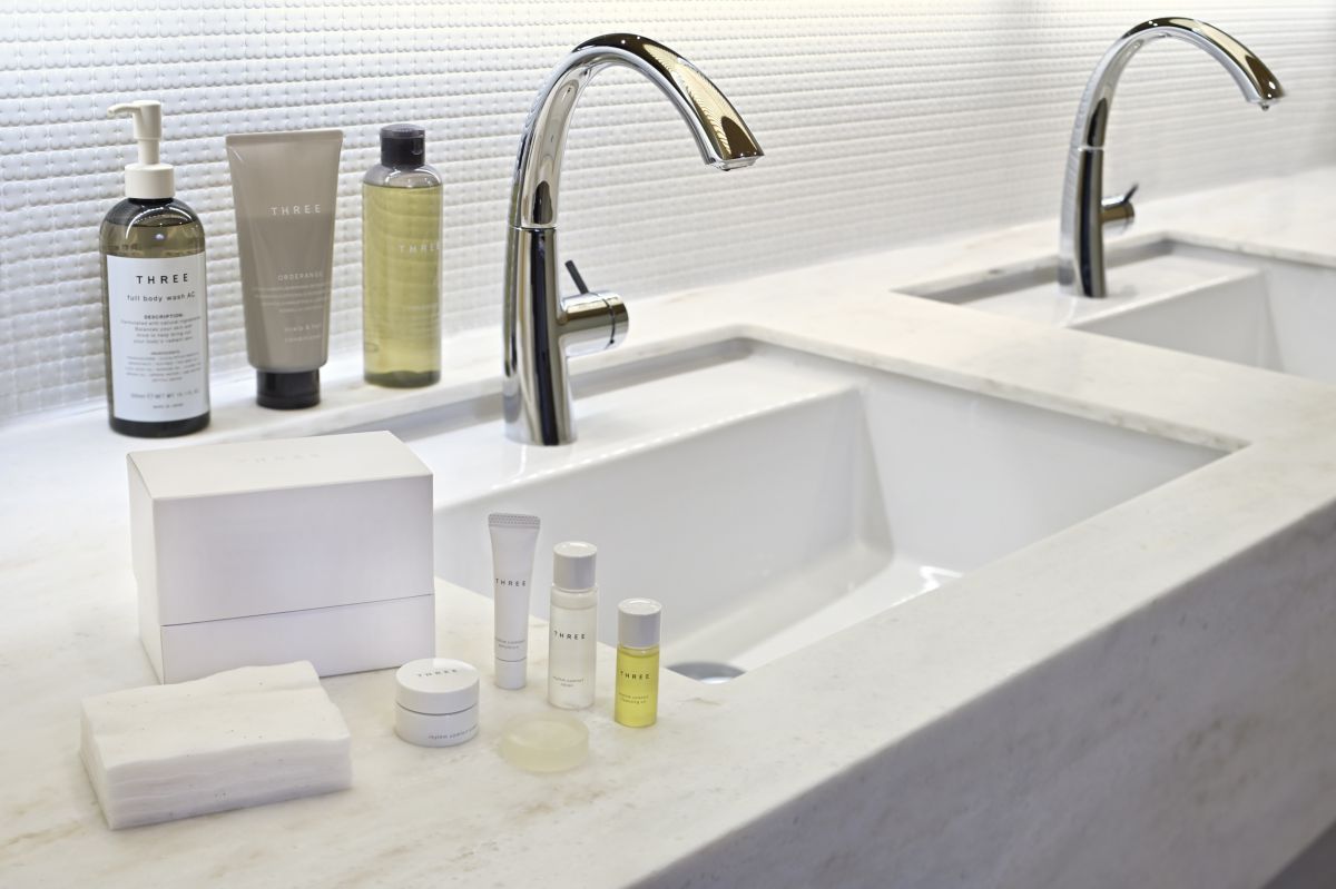 そして、女子の“キレイ”を支えてきたワコールの宿ならではのこだわりが、湯上り後もポカポカと温かさが続く人工炭酸泉。シャンプーなどのアメニティは女性に人気のブランド「THREE」で揃えられています。一部のプランでは、スキンケアアメニティも「THREE」が利用できるというのがさらにうれしい!