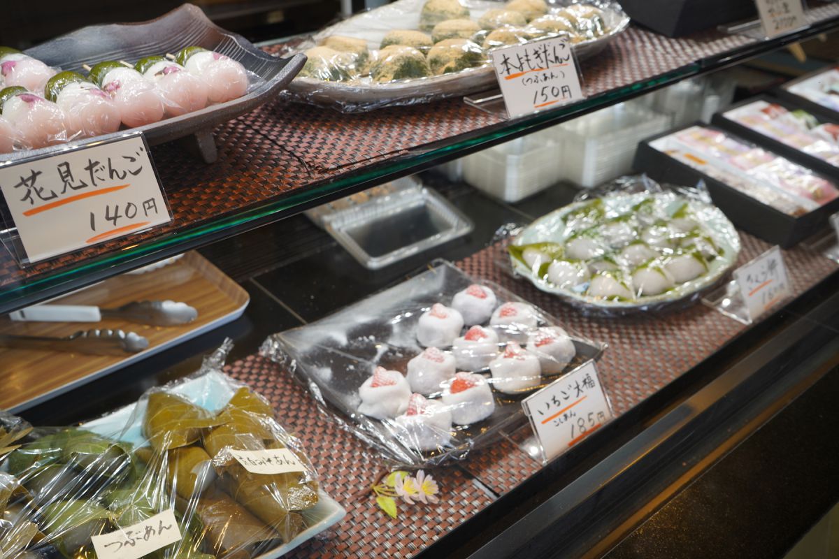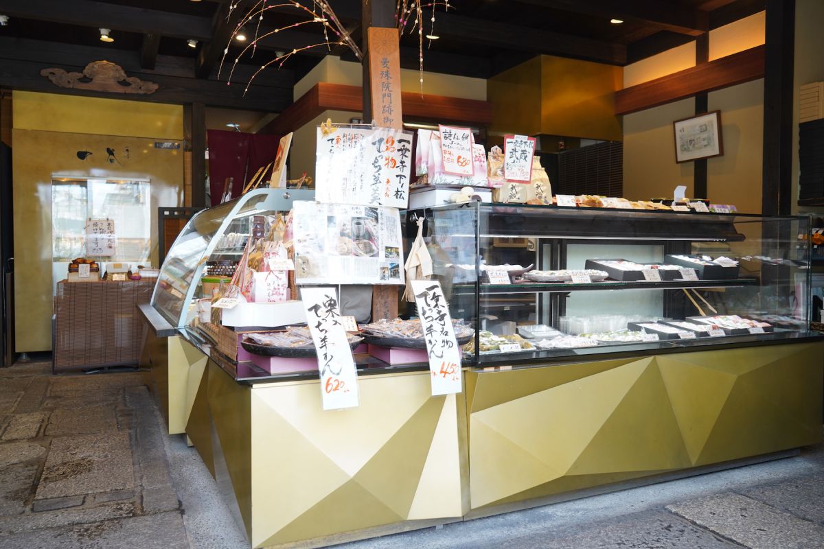 通りに一番目立つ場所には、一乗寺の郷土銘菓であるでっち羊かんが並びます。