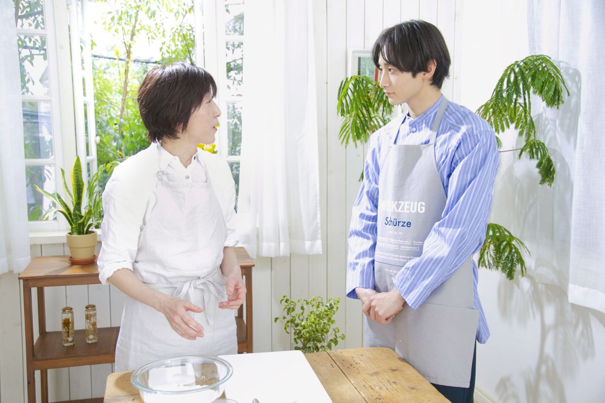 カメラに向かって次々とおちゃめなポーズを繰り出してくれるサービス精神旺盛な小関さん。気づけば、パンのように柔らかな雰囲気と笑いがキッチンを満たしています。