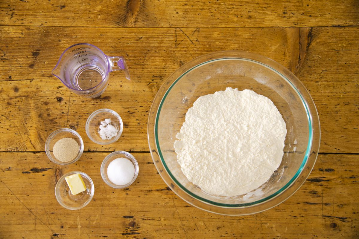 先生「まずはボウルに強力粉を入れ、続いて砂糖、イースト、塩を加えて混ぜます」