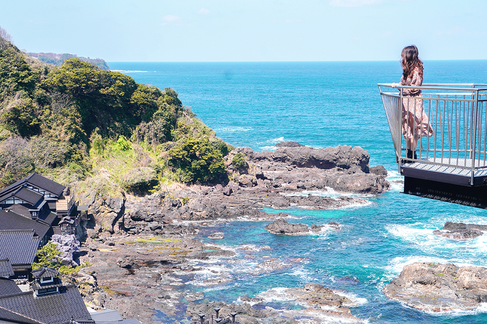 岬を一望できる空中展望台はイチ押しのフォトジェニックスポット。展望台は崖から約9.5mほどせり出ているため、まるで海の上を歩いているかのようなスリルも味わえますよ!
