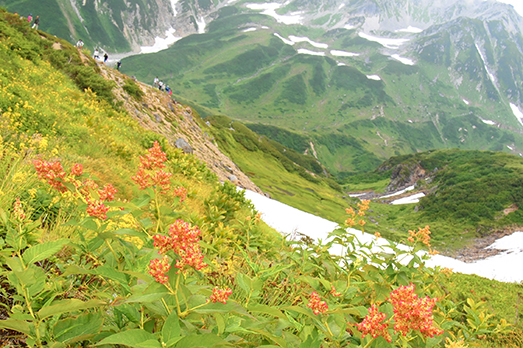 夏の時期には、貴重な高山植物の花が咲き誇ります。新鮮な空気を吸いながら、雪が残る山々と花の絶景を眺めれば、癒されること間違いなし!