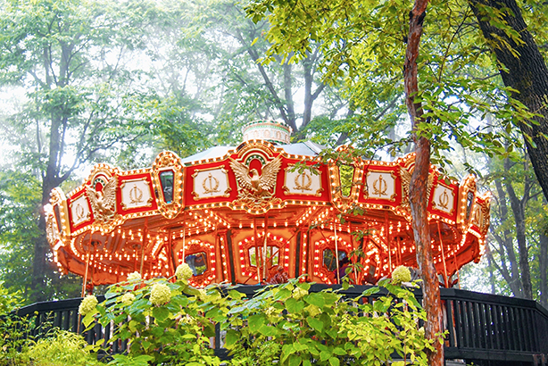 歩いていくと、突如現れたのはメリーゴーランド!日本で唯一森の中にあるメリーゴーランドだそうで、まるで絵本の世界に迷い込んだかのような景色にときめきが止まらないはず…!