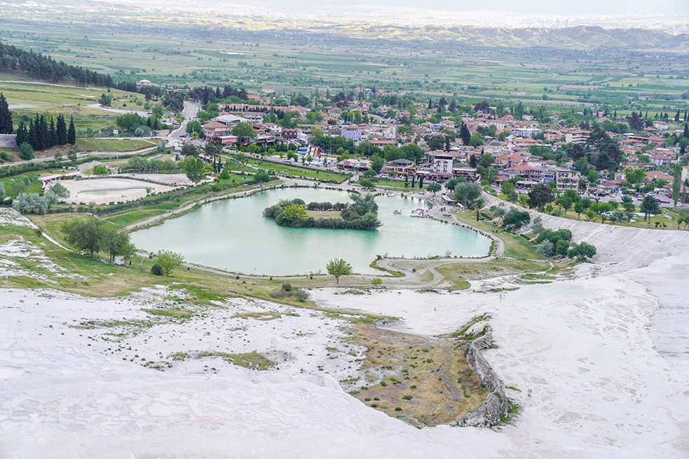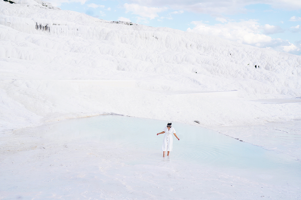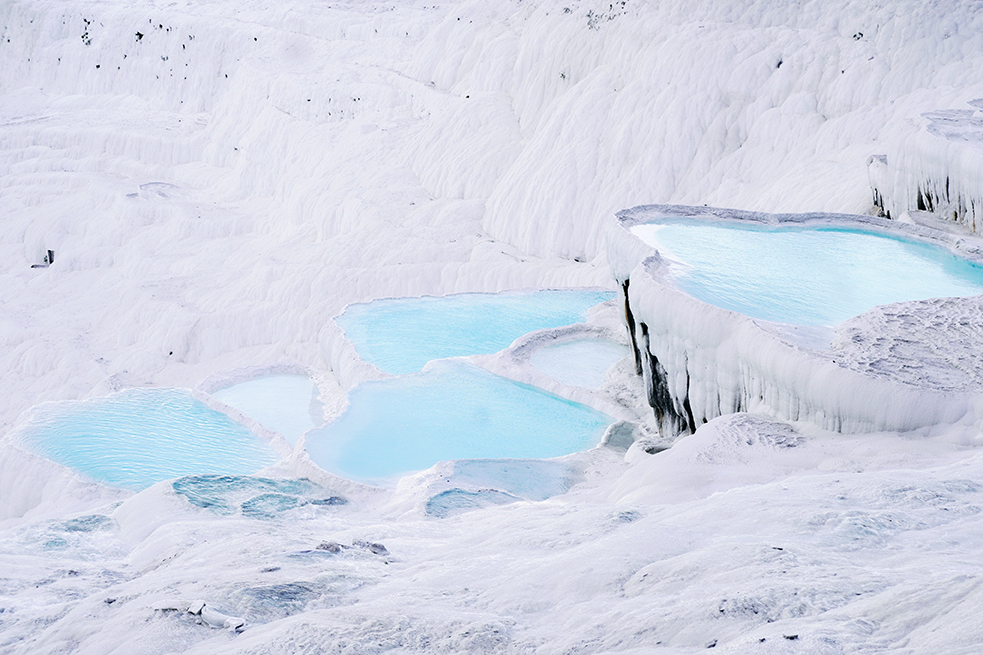 トルコ西部にある、純白の石灰棚とライトブルーの水とのコントラストが美しい「パムッカレの石灰棚」。世界遺産にも登録されるなど、その絶景は折り紙つきです。