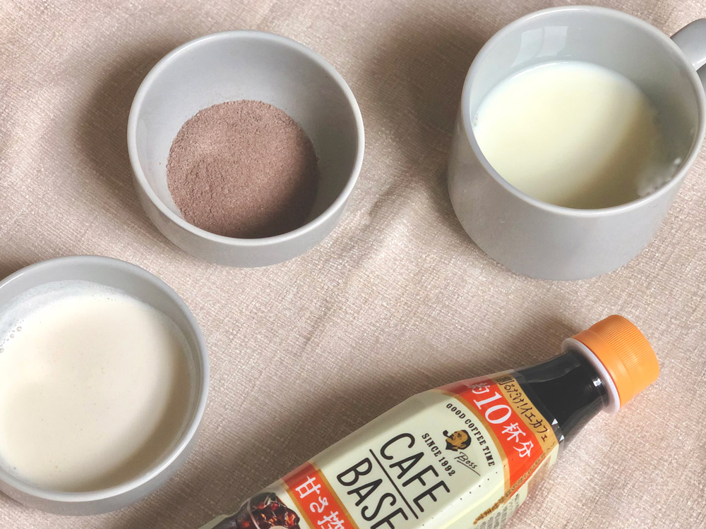 クリームに使うインスタントコーヒーを、ココアや抹茶に変えてみると色々応用ができるので、お気に入りの組み合わせを見つけるのも楽しいですよ。飲むときはよく混ぜてくださいね。
