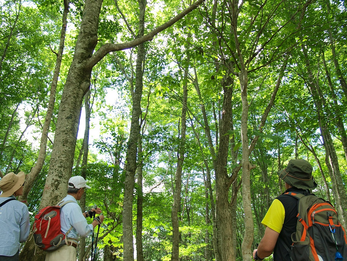 まずは、送迎バスで「白馬岩岳マウンテンリゾート」のゴンドラリフトに乗って岩岳の自然探勝路「ねずこの森」へ。ガイドからのコース説明を聞きノルディックポールをレンタルしたら出発!約60分間、ガイドブックにはない穴場スポットや、ガイドから語られるローカル情報を聞きながら、緑が美しいグリーンシーズンの白馬が楽しめます。