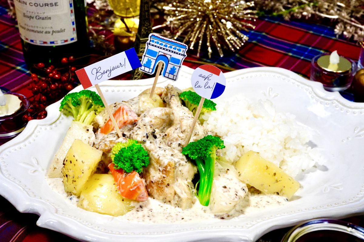 在宅勤務や自粛ムードで頑張っている自分にご褒美を!そんな時は、ヨーロッパのクリスマスを再現するような、豪華なチキンをディナーにいただきましょう。フランスの代表的な家庭料理、チキンフリカッセ。今回はマッシュルームと鶏肉の旨味を生かし、野菜もコトコトと煮込みます。あったか~いクリームソースは心まで温めてくれそう♪
