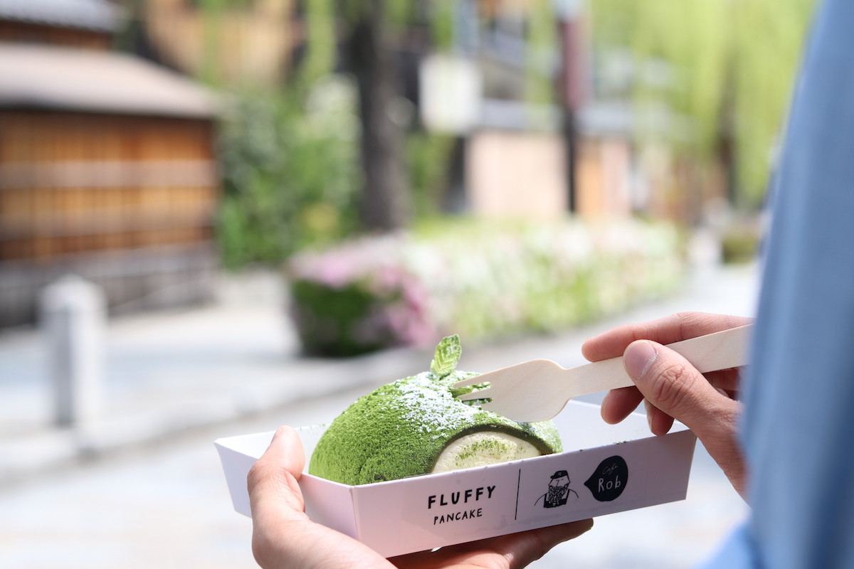 京都・祇園四条にある「Cafe Rob(カフェ ロブ)京都店」は、鴨川からも近く、白川沿いの風量な景色を眺められるカフェ。しゅわっと軽い食感のパンケーキや、宇治抹茶を使ったパフェが大人気です。店内でいただけるのはもちろん、すべてのメニューがテイクアウトできるのもポイント!