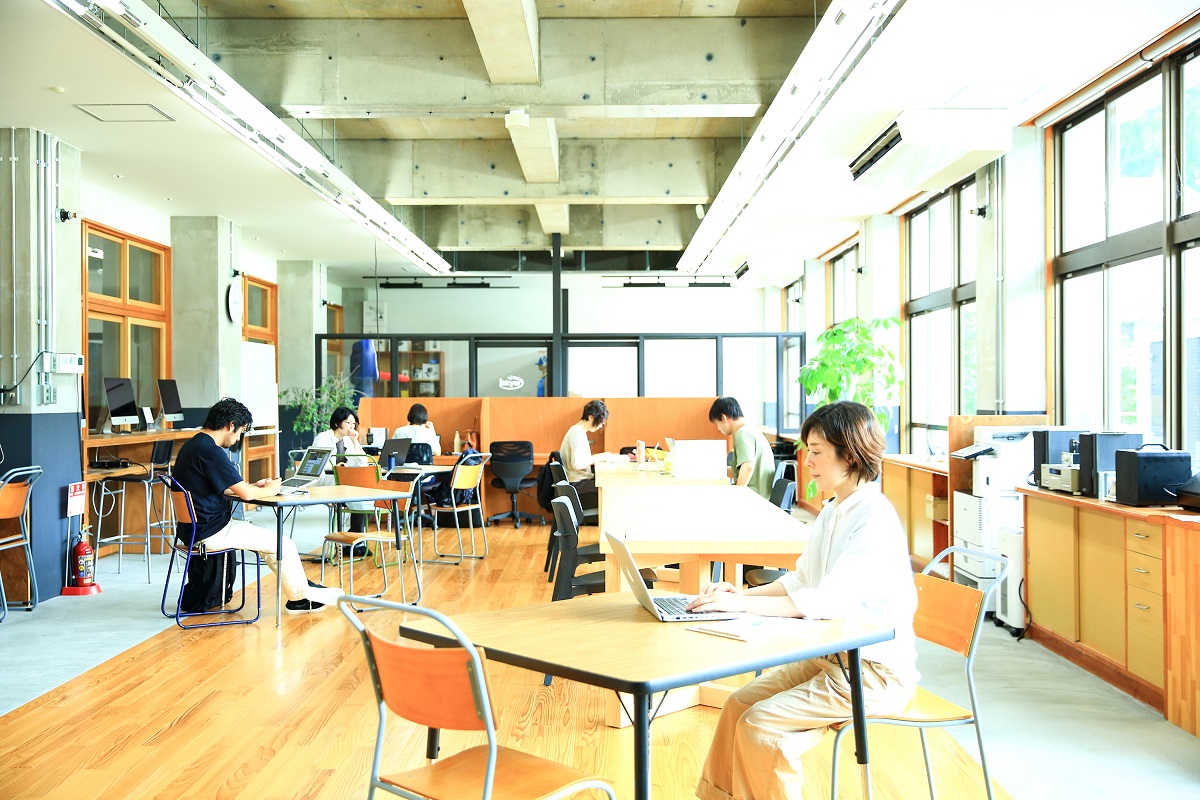 校舎を改修したコワーキングスペースで、サクサク書類作成