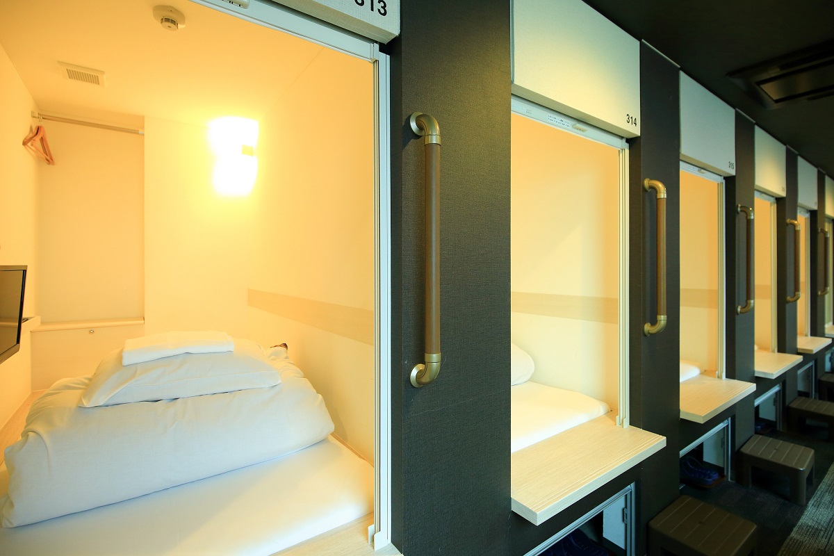 ホステルの客室は、シングルベッドタイプの男女共用ドミトリー。各部屋にテレビが設置され、スマートフォンのイヤホンが使用できるほか、ヘッドホンの無料レンタルも利用できます。バスタオルの無料貸し出しや、鍵付きの貴重品BOXとトランクルームもあるので安心。リーズナブルに宿泊したい人におすすめです。