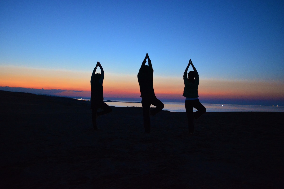 茜色に染まる鳥取砂丘の真ん中でヨガ体験
