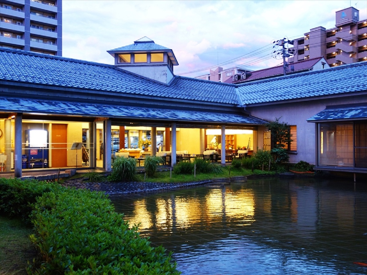 江戸末期創業の観水庭 こぜにやは、JR鳥取駅から徒歩10分という市街地にありながら、天然温泉が楽しめる旅亭。鯉が泳ぐ池や四季折々の姿を見せる日本庭園が広がり、街なかということを忘れさせる静かな空間です。