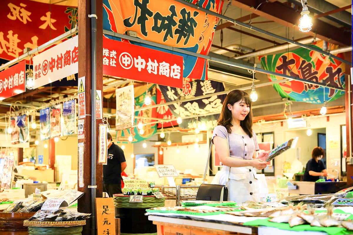 ずらりと並ぶとれたての海の幸や鳥取名物をおみやげに