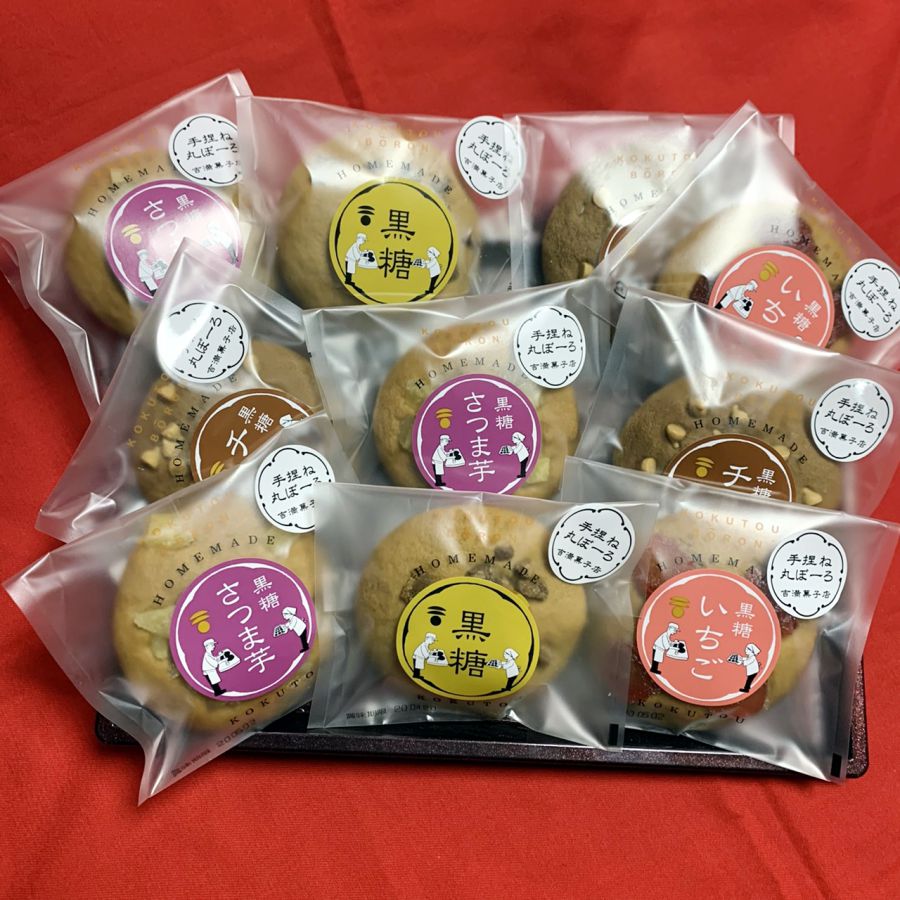 創業90余年の吉満菓子店の「丸ぼーろ」10枚セット2700円(税込)は、鹿児島では昔からの郷土菓子。鹿児島産の黒砂糖を使用した生地で、一枚ずつ手ごねで作っています。味は黒糖・さつま芋・イチゴ・チョコの4種類。特に全年齢層から最も人気のある「黒糖ぼーろ」は、口どけの良さと、黒糖の香りやカリッとした食感が特徴です。ぜひ好みの味を見つけてみて!