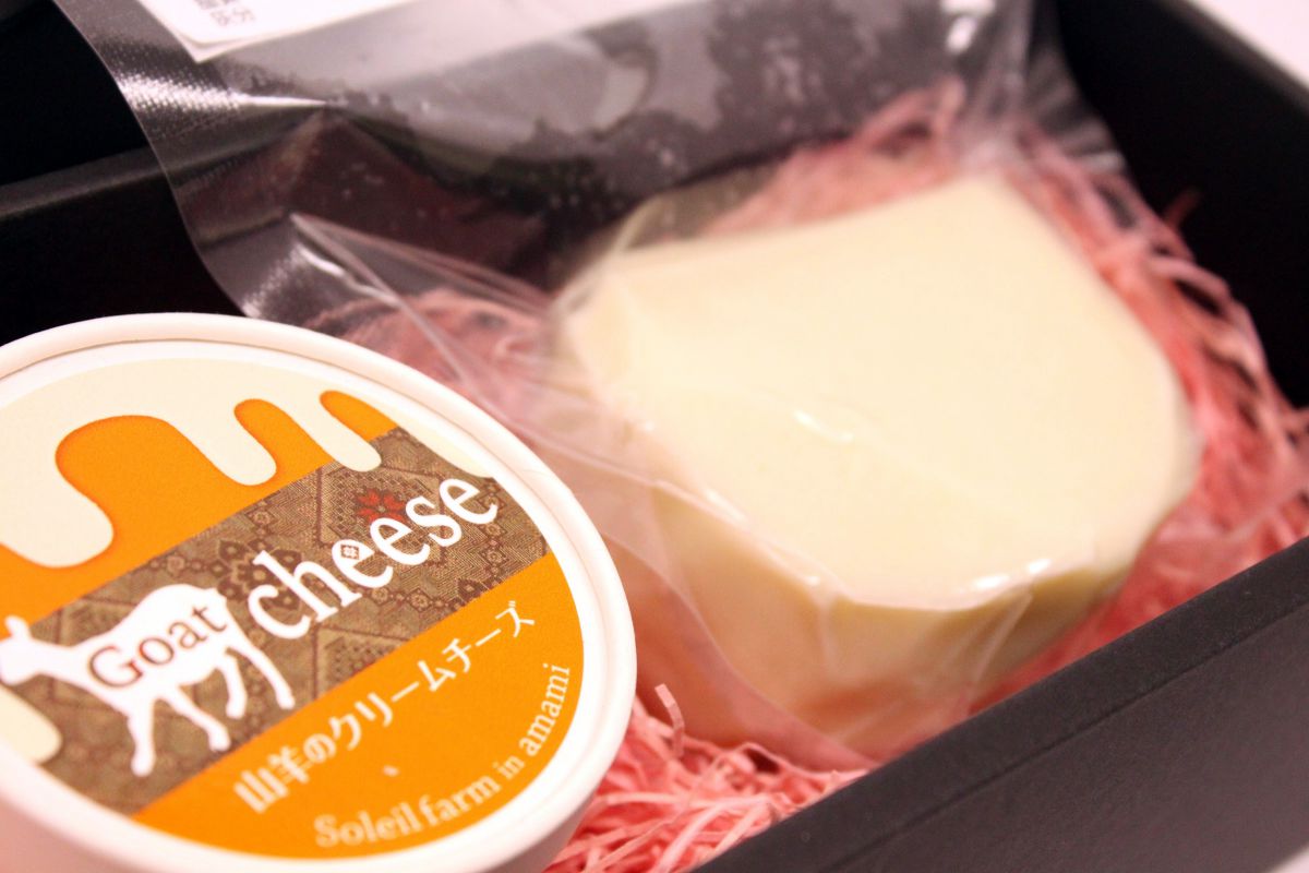 奄美大島からもう1品ご紹介。奄美大島初のヤギ酪農である『それいゆ牧場』で採れたヤギミルクからつくったヤギチーズセット4000円(税込)です。ヤギのミルクは、牛乳よりもたんぱく質やカルシウム、ビタミン類が豊富に含まれているうえ、消化吸収にも優れているんだとか。新鮮なヤギミルクの美味しさをダイレクトに感じられる非熟成タイプのクリームチーズ100gと、3か月以上丁寧に熟成させたゴーダチーズ120gの2種が楽しめます。