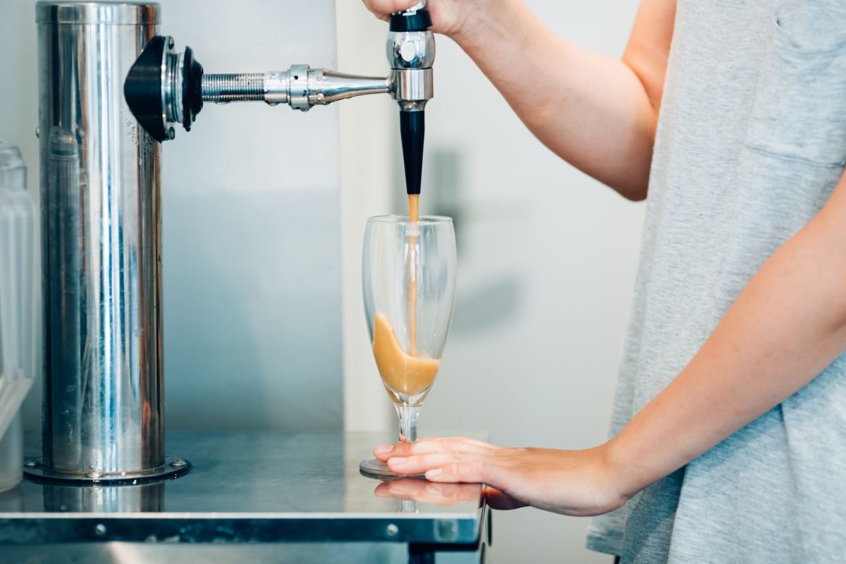 スイーツとあわせていただきたいのが、お店オリジナルの「ドラフトコーヒー」450円(テイクアウト350円・税込)。なんとビールサーバーを改良してつくられたコーヒー専用のマシーンがあるんです。こちらのマシーンに7時間かけて抽出したコーヒーを入れて窒素を注入。マイルドな口当たりとすっきりとした味わいでゴクゴク飲めちゃいます!