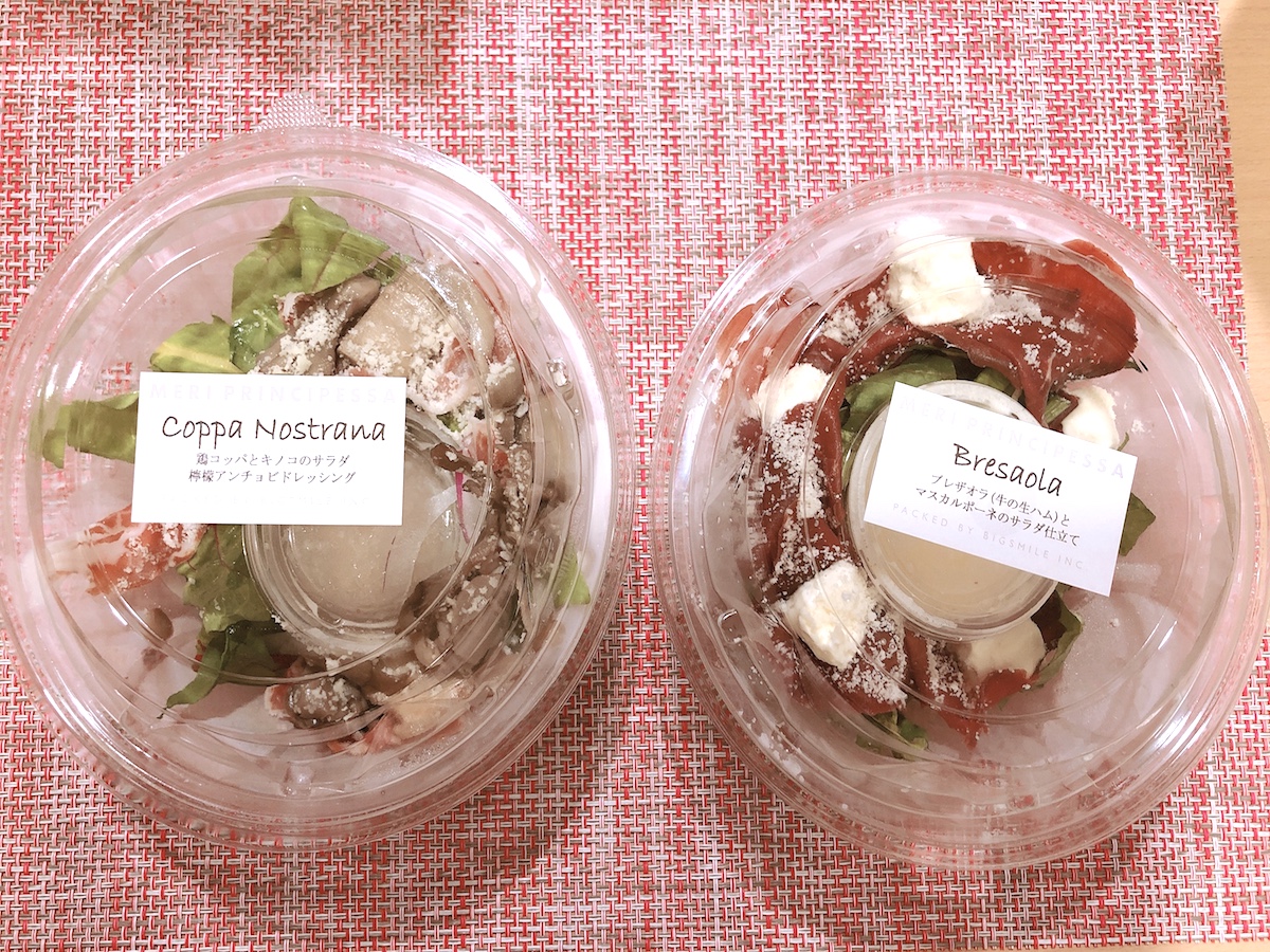 「豚コッパとキノコのサラダ檸檬アンチョビドレッシング」や「ブレザオラ(牛の生ハム)とマスカルポーネのサラダ仕立て」各500円(税別)などおしゃれで栄養価の高い食事が安くゲットできちゃいます。ラインナップは毎日変わるので、要チェックです!