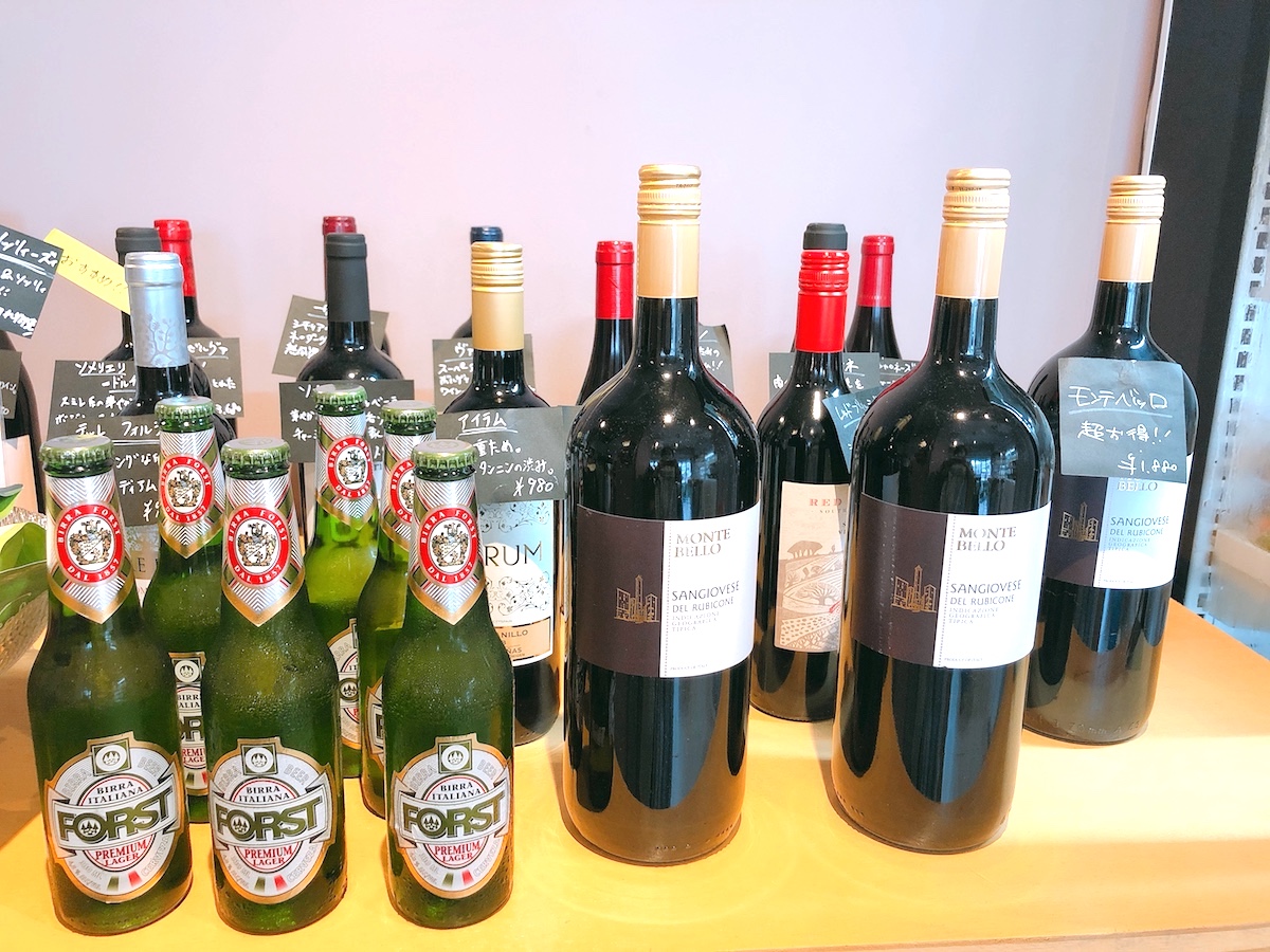 食材のほかワインを中心としたお酒も充実しています。ソムリエの資格を持ったスタッフが手頃で美味しいワインをセレクト。汎用性の高いものや重めの味、フルーティーなものなど幅広いジャンルが揃うように選んでいるそう。迷った場合はこちらもスタッフにご相談を!料理にあったお好みのワインをおすすめしてもらえます。