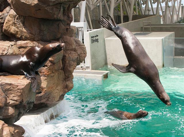ショーや体験プログラムが充実していることで知られる水族館「城崎マリンワールド」。ショーを楽しむシーランドや、イルカの生態を知るドルフィンタンク、海獣たちが動き回るチューブと施設が分けられ、エリアごとに海に生きるものたちの生態を見ることができます。定番のイルカ・アシカショーはもちろん、アザラシのロッククライミングや特別席から見学するフィッシュダンスなど、ショーはバリエーション豊か。ペンギンがトコトコ散歩する姿などは見ているだけでほっこりします。ドルフィンタッチやドルフィンスイムなどの体験オプションもあります。