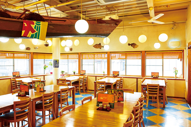 津居山漁港や市場から直送された鮮魚を取り扱う「おけしょう鮮魚」が手がける食事処。おすすめは、旬の魚介がたっぷり盛られた海鮮丼です。プリプリの魚介に、箸が止まらなくなること間違いなし!1年中楽しめるカニメニューのほか、揚げものやお造りなどの定食も充実しています。1階のお店で販売している鮮魚を選んで、食事処で調理してもらうこともできるので、店に並ぶ魚介も要チェック。日本海の恵みを心ゆくまで堪能しましょう。