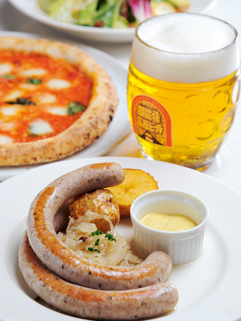 人気の地ビール・御殿場高原ビールと料理を楽しめるビアレストラン。ビールのラインアップは全部で5つ。黄金のビール・ピルスやフルーティーな無濾過ビール・ヴァイツェン、黒ビール・シュバルツなど、こだわりの味が楽しめます。ステーキやハンバーグなどの肉料理や、ピザ、パスタとあわせて、気になるビールを試してみてはいかが?