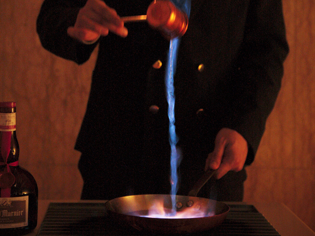 青い炎の美しさにくぎ付け!テーブルデザートの実演に大満足のスイーツ