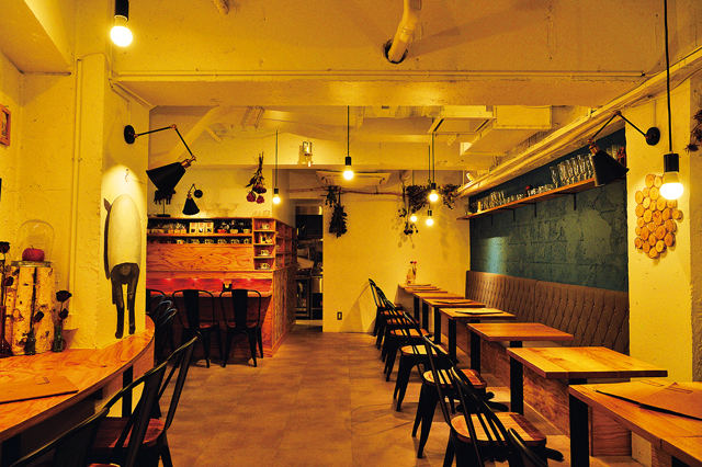 屋根裏部屋をコンセプトにしたカフェダイニングは、隠れ家のような雰囲気。アンティークの家具に囲まれた空間で、落ち着いた時間を過ごせます。メニューは、ハムやパテ、カルパッチョなどお酒に合うタパスのほか、豚のグリルやピザ、パスタなどのメイン料理まで充実。カップルシートや個室もあるので、事前に予約して良い席を確保しておくといいでしょう。