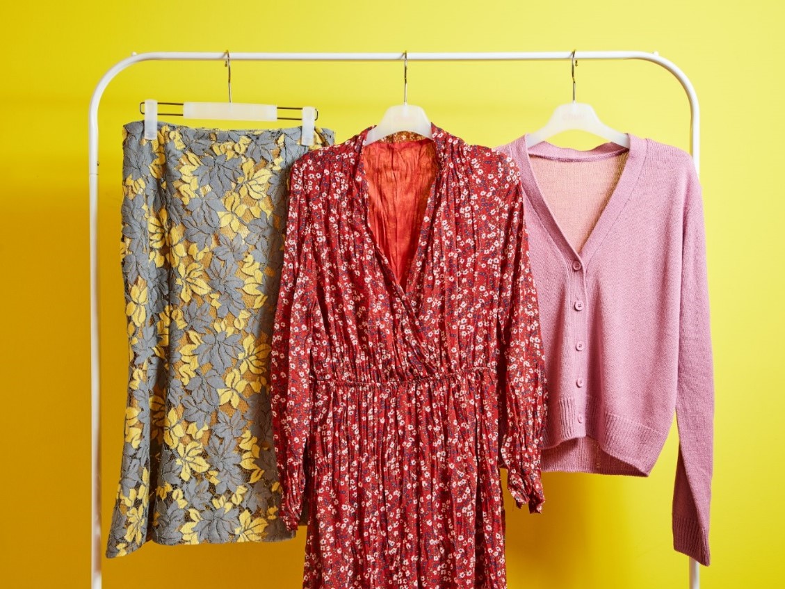 1階には女の子らしい形や柄、色合いが素敵なトレンドアイテムが並んでいます。ワンピースやカーディガン、スカートなどはすべてW2万~4万(約2000円~4000円)程度で購入可能。種類も豊富なので、たくさん迷ってお気に入りをゲットして!