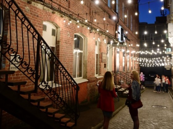 こちらはグム百貨店裏通り。市内きっての高級品を取りそろえる老舗百貨店「グム百貨店」の裏手に位置し、赤レンガに囲まれた路地裏の石畳を感度の高い若者たちが散策しています。おしゃれなカフェやショップが相次いでオープンしており、流行発信地としても注目度大!夜のライトアップも素敵です。