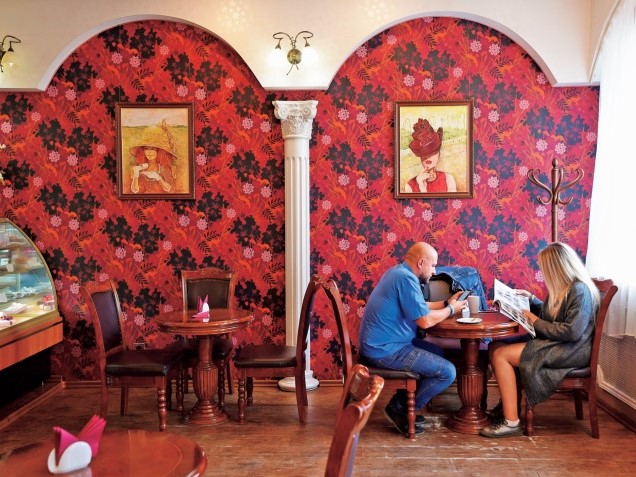 感度の高い人々をターゲットに、フォトジェニックな空間作りに磨きをかけるウラジオストクのカフェ。写真のカフェ「デュエット」は、美しい装飾やロマンティックな店内の色使いにきゅん♡とする人気のお店です。大きな窓から入る自然光が、写真撮影をアシスト!ドリンクのほか、ロールケーキ(300P)などを楽しめます。