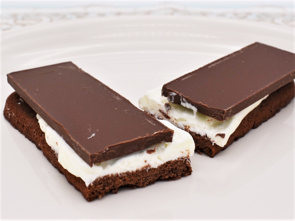 板チョコとココア生地のクッキー、クリームはそれぞれ違った甘さがあるため、噛めば噛むほど色々な味が楽しめます。甘党にはたまらない味わいですが、甘さを抑えたい人は苦味の強いコーヒーを飲みながら食べるのがおススメです。