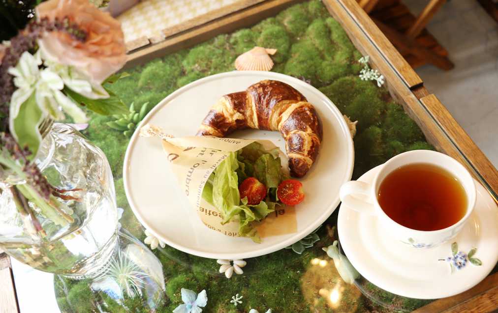 花と緑に囲まれた心地よい空間の中で、モーニングやカフェタイムにほっとひと息つける非日常感を味わってみて。
