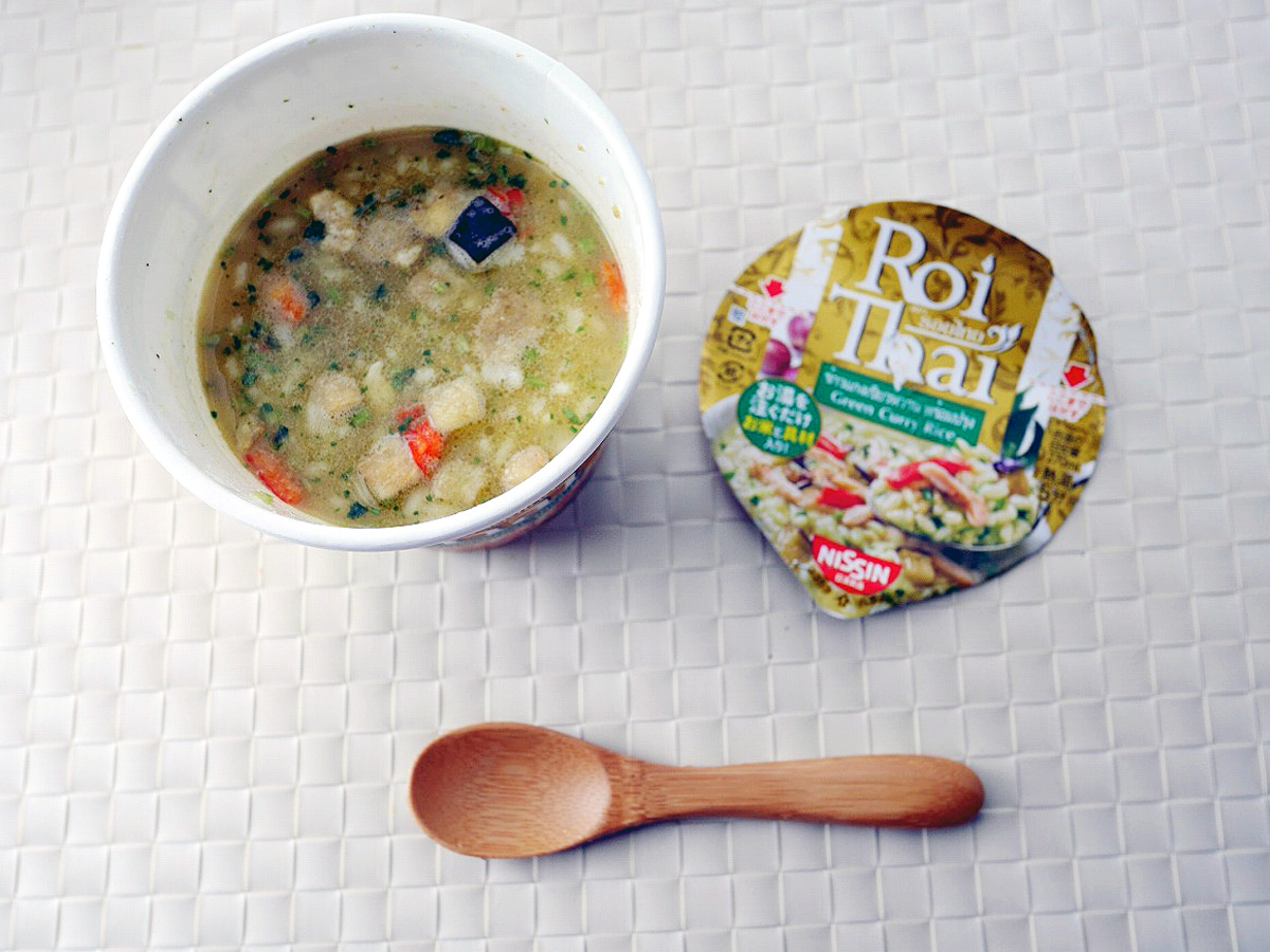 今回ご紹介する「ロイタイ グリーンカレーライス」(248円)は、お馴染みの四角いパックのカレーをインスタントにした商品です。