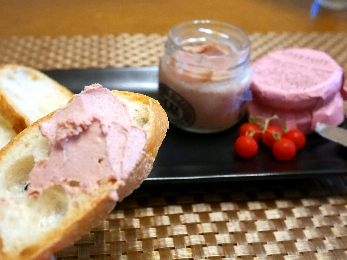 国産豚のレバーを使ってマーガリン、チーズと一緒に口当たりのなめらかなペーストにしています。