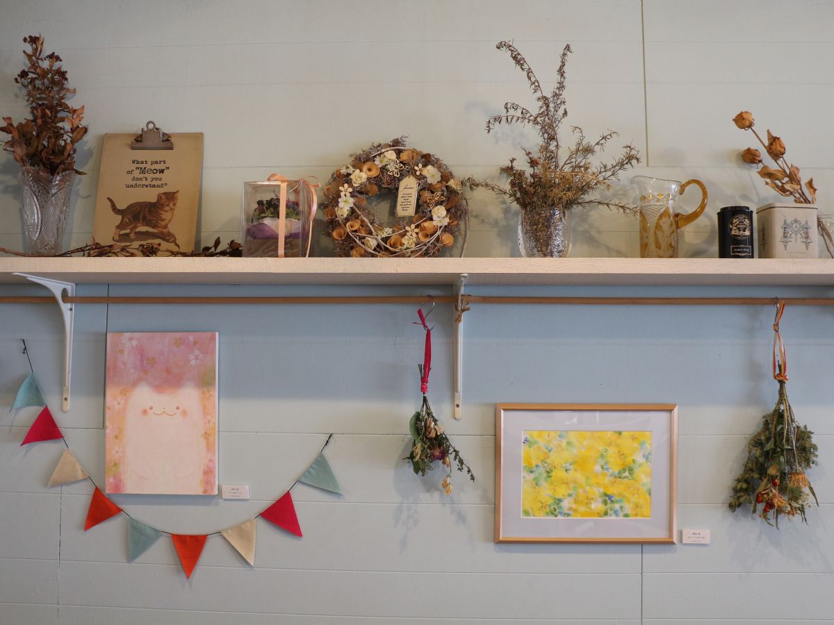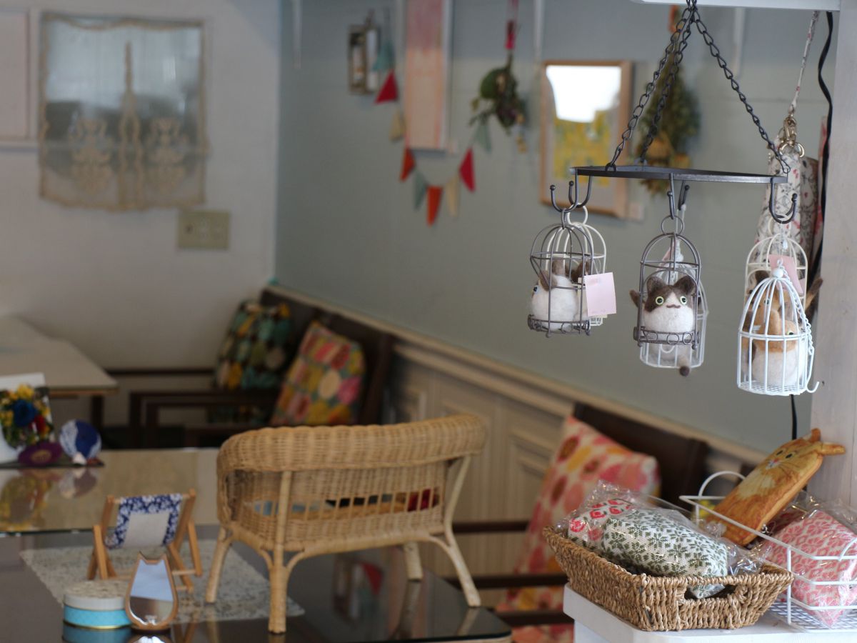 「オリオンのニャンズ」のほかにも、店内にあるミニチュア小物は、お客さんが持ってきてくれたものがたくさん。忘れ物かな?と思ったら、お客さんがさりげなく置いて帰っていたそうです。また、ハンカチーフや缶ミラーなど、持っていたら便利な小物の販売もしています。