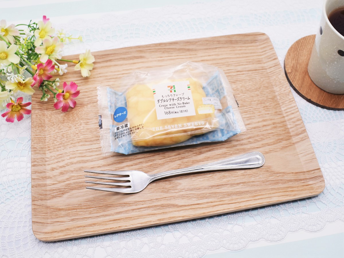薄く焼いた生地に、たっぷりのクリームが包まれたクレープ。花束のように巻いた形が一般的ですが、最近では手のひらサイズの食べやすいクレープも登場しています。今回は、2種類のチーズクリームを使ったセブン-イレブンの「もっちりクレープ ダブルレアチーズクリーム」(181円)をセレクトしました!