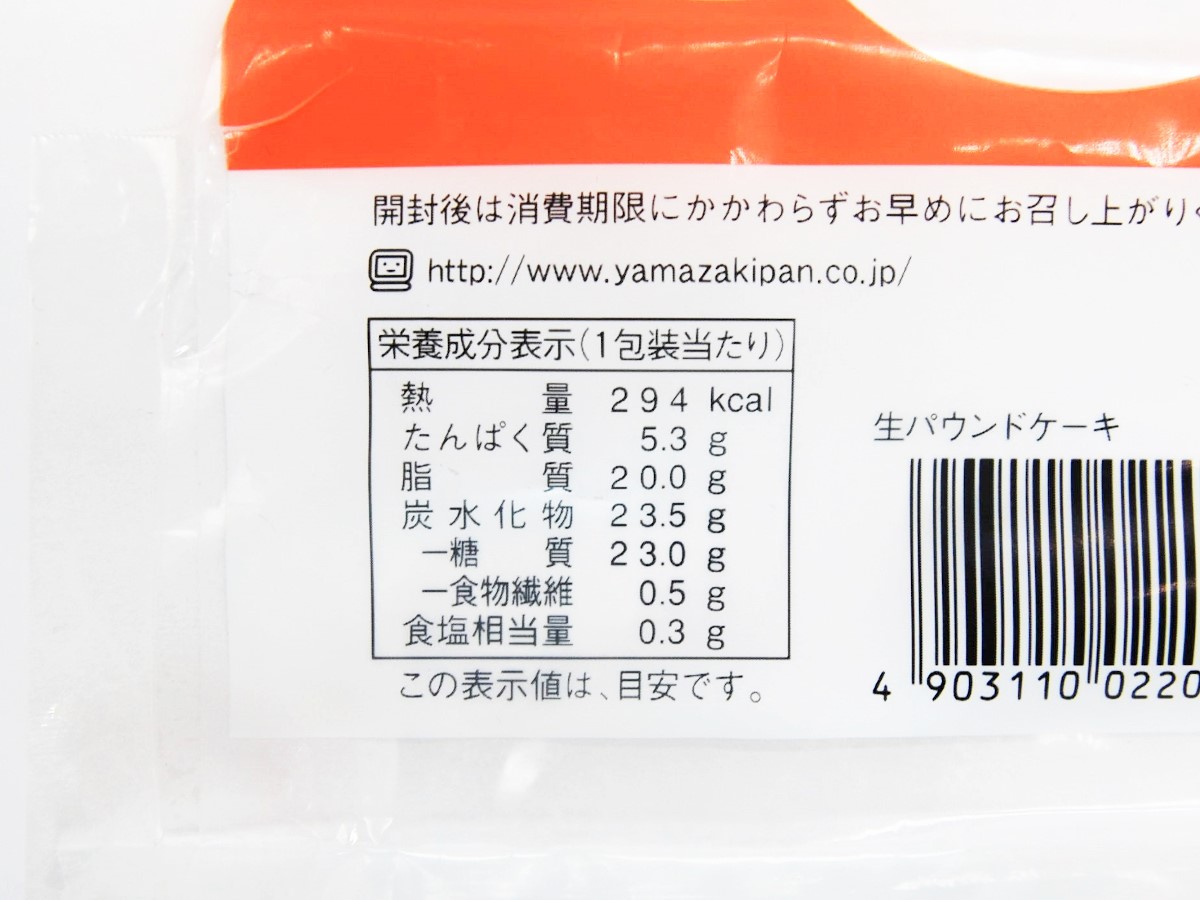 赤色のパッケージに入っている生パウンは、まるで食パンのようなフォルムをしています。袋を開けると甘い香りが一気に漂い、思わず幸せな気持ちに…。生地の表面には白い粉がトッピングされているため、とっても華やかな見た目ですね。なお、1包装当たりのカロリーは約294kcalほど。