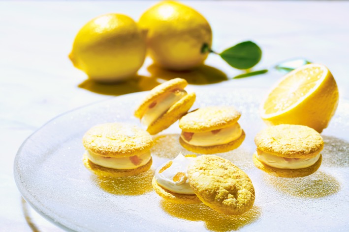 「レモンのクリームサンド」は、甘酸っぱいレモンクリームを軽い食感のレモンダックワーズ生地でサンド。サンドしたレモンピールのほろ苦さが絶妙なアクセントに。