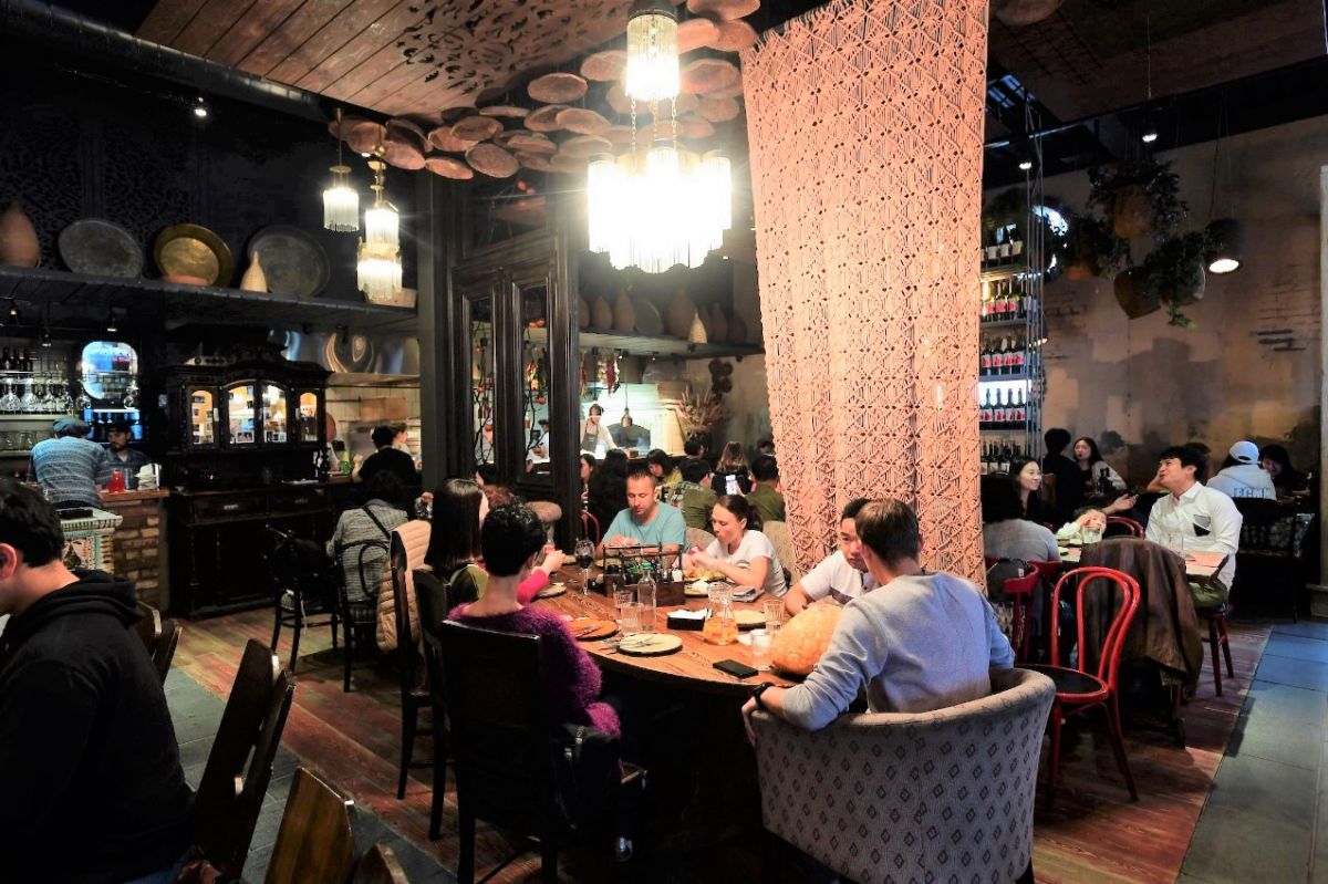 エキゾチックなムードたっぷりの店内はいつも賑やか。ジョージアは文明の十字路に位置し、多くの国の影響を受けた食文化が成立しています。また、日本でも人気が急上昇しているジョージアワインも、ロシアのレストランでは気軽に注文できます。野性的で複雑味があり、料理と相性よく楽しめる本場の味をぜひ味わってみて。