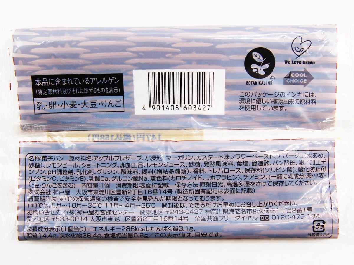 表面にイエローカラーのりんごをゴロッとトッピングした「国産りんごのアップルパイ」。全体を“ナパージュ”でコーティングしているので、とっても煌びやかな見た目をしています。パッケージを開けてみると、パイ生地の香ばしい香りがふわり…。後からレモンやマーガリンの風味も漂い、食欲が一気にそそられます。