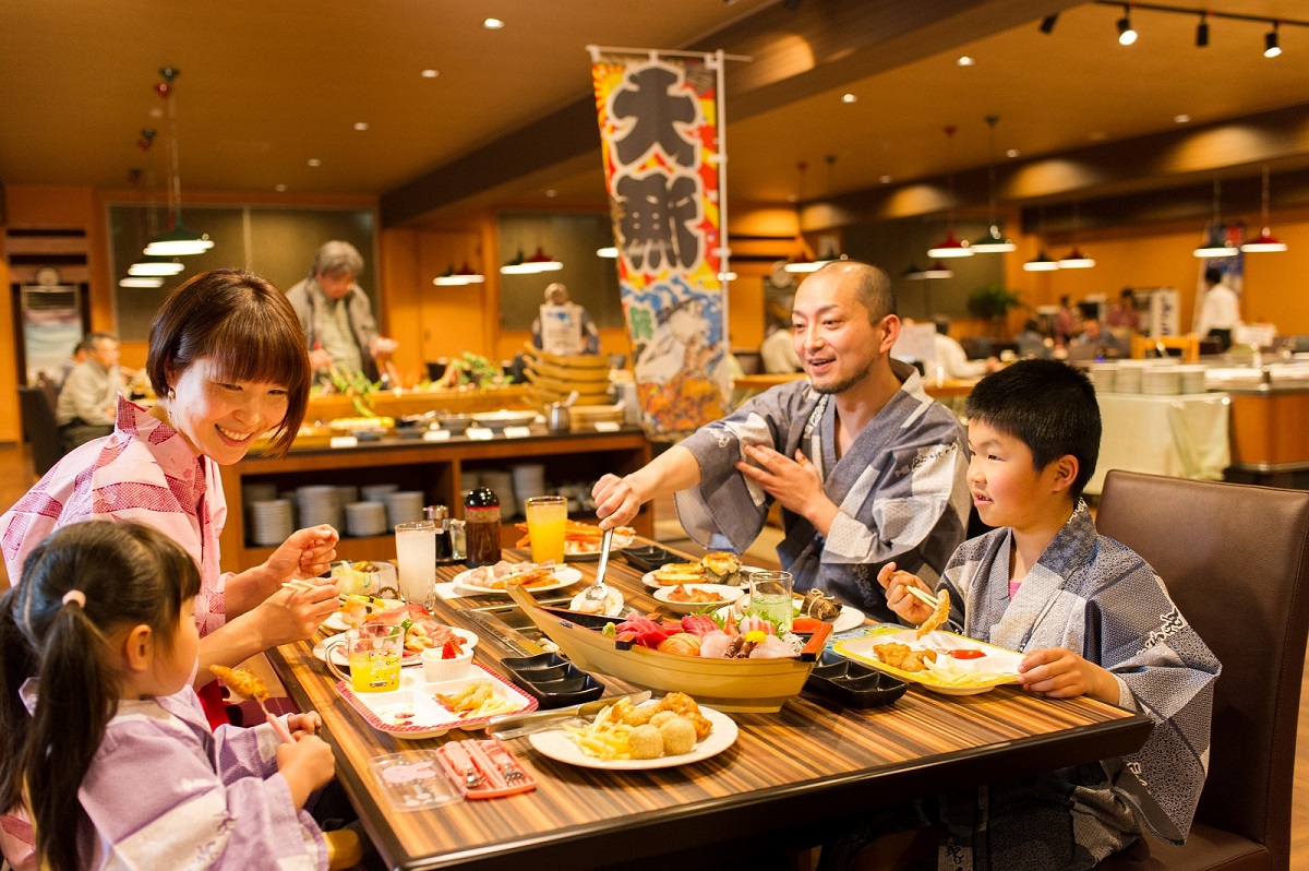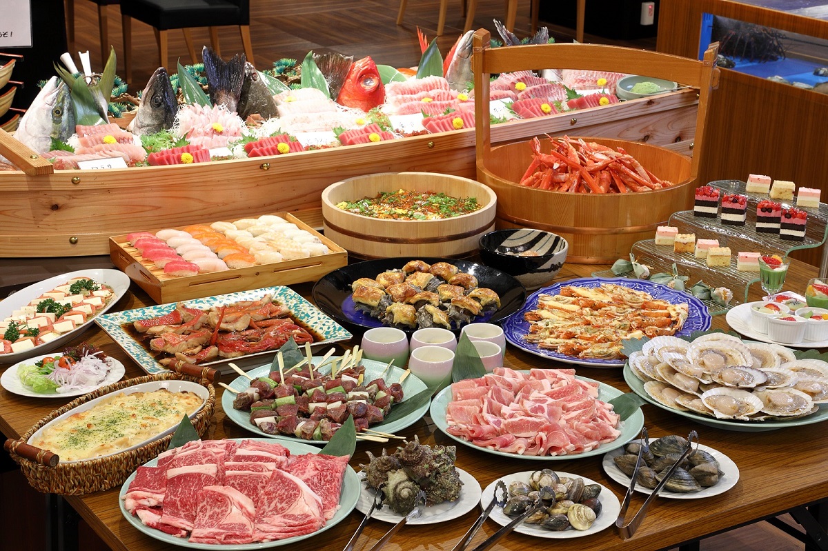 人数が多いと、好き嫌いに合わせるだけでも大変ですよね。バイキングレストラン「喰海(くうかい)」は“来館する、すべてのお客様が楽しめる”というテーマで、夕食では常時60品目以上、朝食でも40品目以上を掲げていますが、とにかく量だけは納得できる!ではなく、どの料理も一品料理として満足できることを目指しているそう。